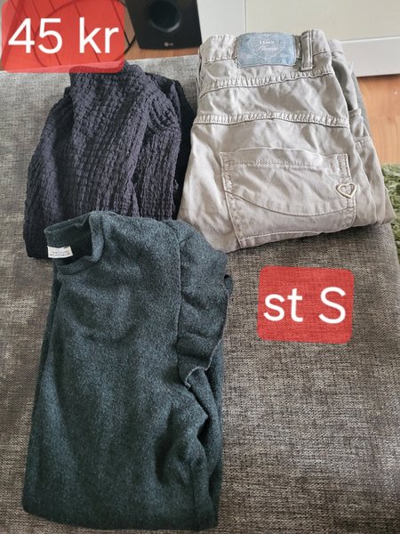 Jag har ett klädespaket i st S. Där e ett par byxor, 1 klänning och 1 långärmad.
