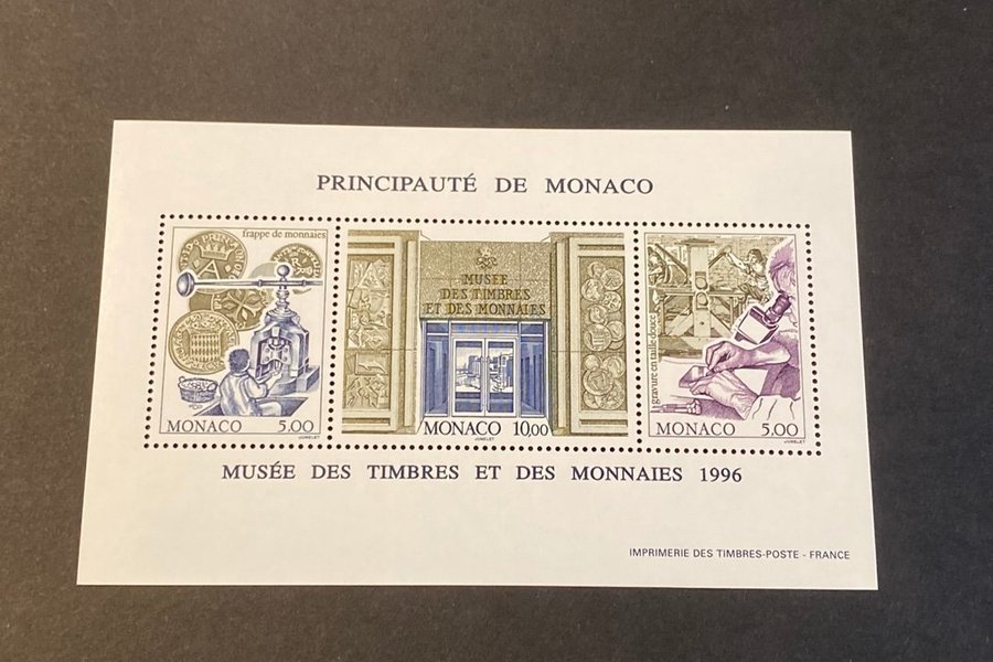 Monaco postfriskt block mynt museum