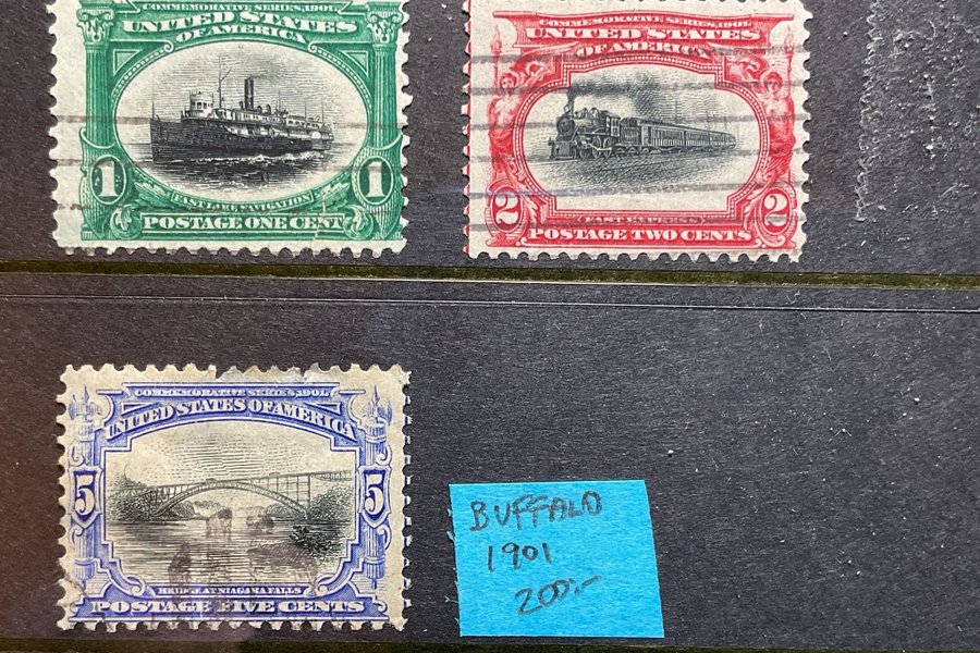 Tre st olika frimärken från serien "Buffalo" 1901 (200:-)
