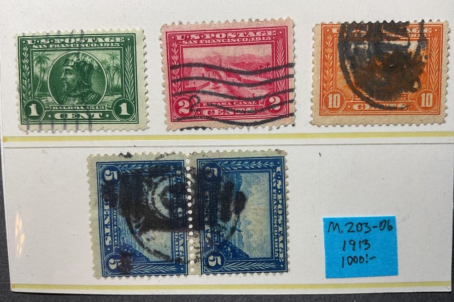 Stämplade frimärken "Panama-Pacific" 1913 M.203-206 (1.000:-)