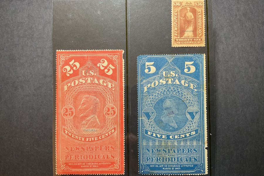 Amerikanska stämplade facsimile falska frimärken.