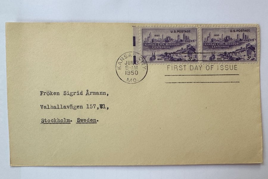 FDC USA. Stämplat juni 1950 i Kansas city, Missouri.