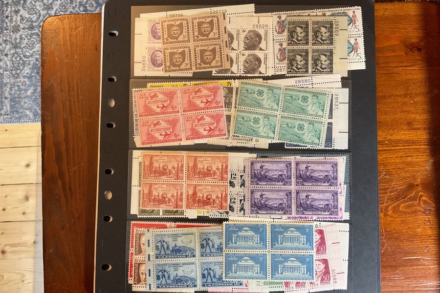 Ett visirblad urtaget ur stort visiralbum med Amerikanska postfriska lite äldre fyrblock.