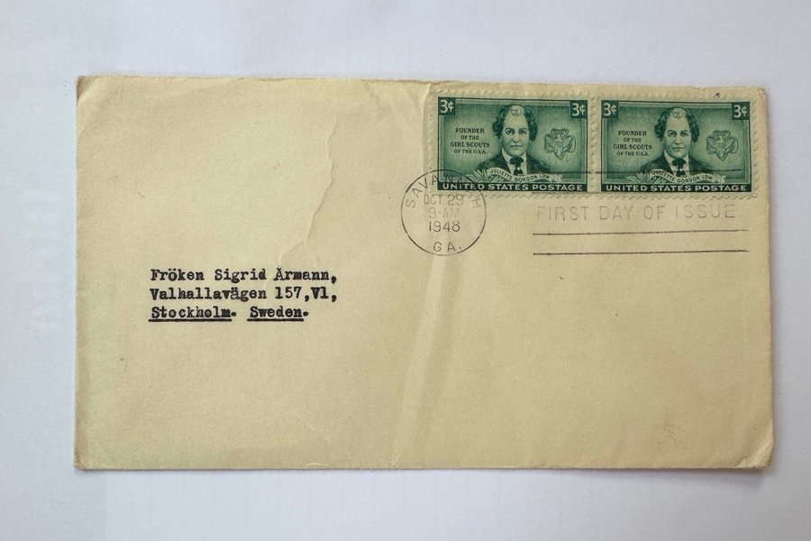 FDC USA. Stämplat 29 okt 1948 i Savannah, Georgia.