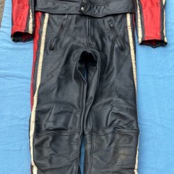 Hängselbyxa i skinn från Corell. Väl använda men fortfarande fina. Sömsläpp i grenen på både ut och insida. Stl 50 herr. Se bilderna noga och bilda en egen uppfattning om skicket.