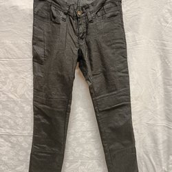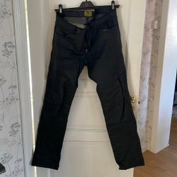 Skinnbyxor i med snörning på sidan av benen. Köpta på Louis. Står bara storlek 34 på lappen i byxan. Benlängd ca 80 cm och midja ca 100 cm. Mjukt behagligt skinn.