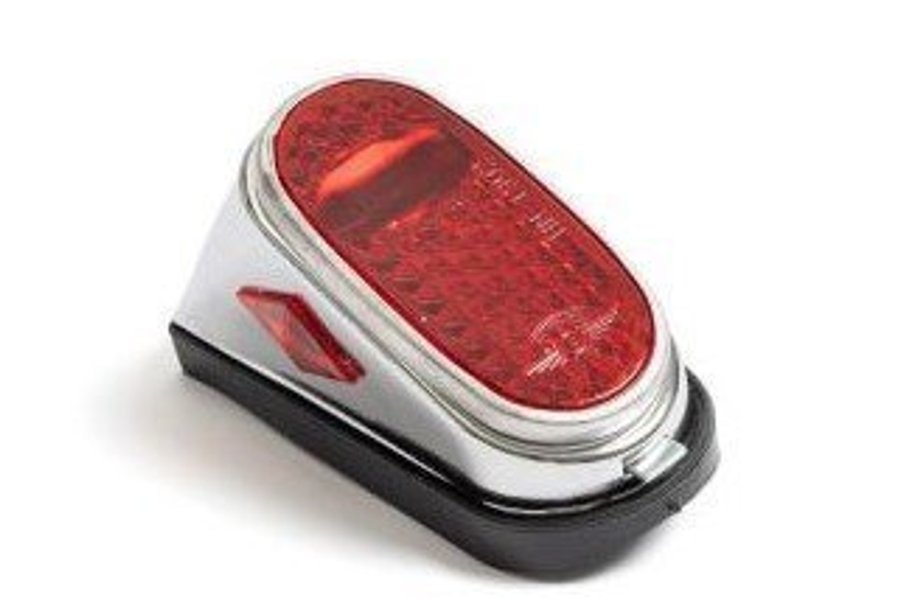 Baklyset är nytt. Baklyktan satt monterad på många mopedmodeller. Glödlampa ingår ej, använd E10. C-c skruvhål 62mm, mått 104x43mm på gummit. Kolla även på våra övriga auktioner.