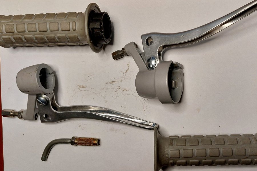 Reglagesats. Gas-, broms- och kopplingshandtag komplett med sträckare och Lusito "gummi"handtag. Säljes i befintligt skick. Betalning senast tre dagar efter avslutad auktion.