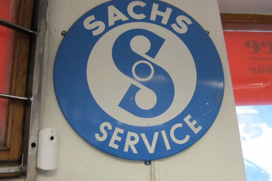 stor sachs plåtskylt. rundmodell 600mm . En sachs orginalskylt ingen eftermarknads.