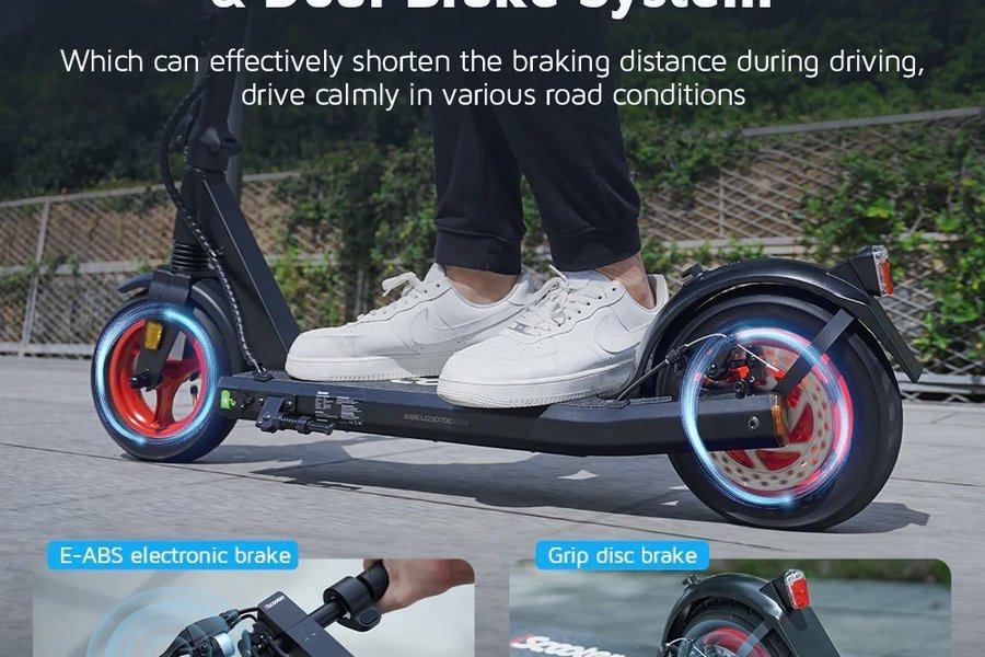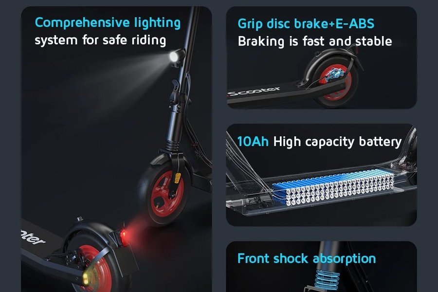 iScooter i9s är optimerad för säkerhet och synlighet med sina integrerade blinkers och robusta belysningssystem. Den passar dig som ofta rör dig i tät stadstrafik och därför prioriterar extra trygghet, tydlig kommunikation med medtrafikanter och en stabil körupplevelse tack vare dess dubbla fjädring.