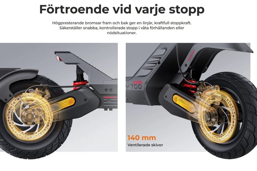 Engwe Y700 lanserades mars 2026 och är en kraftfull och robust elsparkcykel som balanserar lång räckvidd med hög komfort. Den är särskilt framtagen för pendlare och entusiaster som söker en pålitlig maskin för både stadstrafik och ojämnt underlag, tack vare sitt avancerade dämpningssystem och smarta säkerhetsfunktioner.