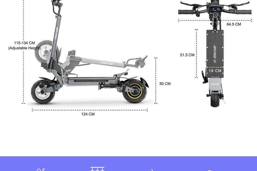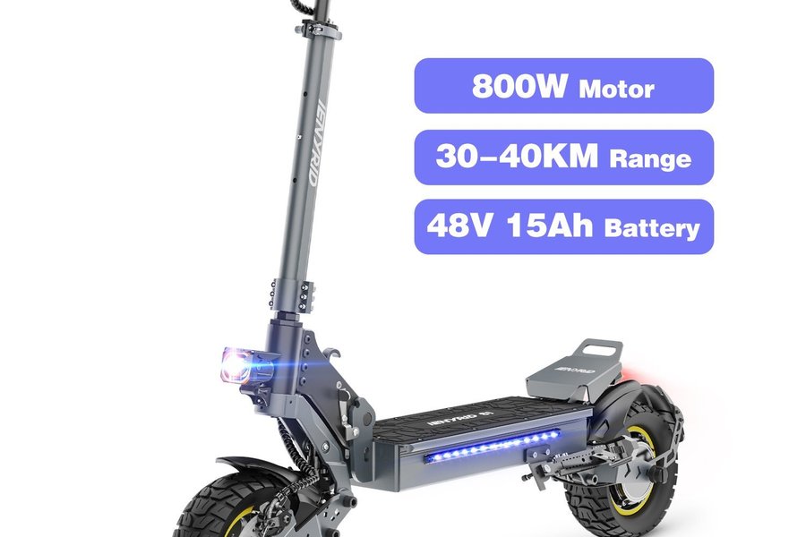 iEnyrid S1 är en mångsidig elsparkcykel utrustad med en kraftfull enkelmotor på 800W som ger en jämn acceleration och en topphastighet på upp till 45 km/h. Med sina 10-tums terrängdäck och en räckvidd på cirka 30–45 km är den ett utmärkt val för pendlaren som vill ha en bekväm och stabil maskin som klarar både stadens gator och ojämnare underlag.