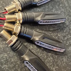 Två LED-blinkers med kablar för anslutning. Se bilder för detaljer.