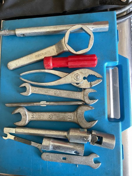Original verktygssats med skruvmejsel, tång, skiftnycklar och andra verktyg till Suzuki 250cc