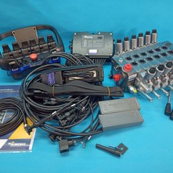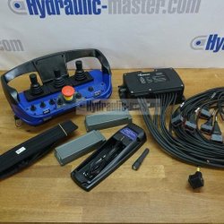 I sin grundform består fjärrstyrningssystemet av en bärbar styrenhet med manöverspakar för proportionell styrning och omkopplare för ON/OFF-funktioner, en centralenhet med anslutningskabel för styrning av proportionella elektrohydrauliska skjutreglage.