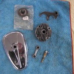 Gamla packväskor i galon för den som vill ha det gamla utseendet på sin veteran moped eller Mc. En rem brusten o ett mindre skavhål se bild 6 o 7. Övrigt skapligt skick enl bilderna.