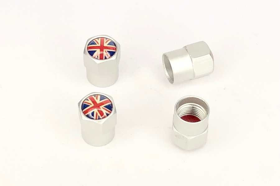 Ventilhatt Union Jack med gummi tätning x 4