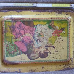 se Detaljnummer på bild 2 undersidan, lite skadad vänster bakhörn nerkant. och de 2 hålen med 1 knappsats är senare ditsågat, annars komplett med askkopp