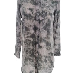 Denna grå knäppta tunika blus i storlek M är tillverkad av 100% bomull och är perfekt för en avslappnad men ändå sofistikerad look. Med tre fjärdedelars ärmar och vackert fågelbroderi kommer denna blus definitivt att få dig att sticka ut från mängden.Unik design med detaljer