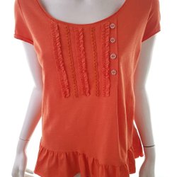 Med dess intensiva orange färg kommer denna tunika blus att få dig att sticka ut i mängden. Den är ärmlös vilket gör den perfekt för varma sommardagar, medan volangen ger den en extra touch av elegans. Kombinera den med ett par jeans för en avslappnad look eller med ett par klackar för en mer dressad outfit.