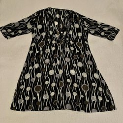 Grå tunika med rund halsringning och korta ärmar. Tunikan har en rynkad detalj nedtill som ger den en avslappnad och ledig passform.