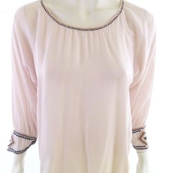 Stilsäker tunika blus i storlek M, färgad i en svalkande blå nyans. Denna blus är tillverkad av viskos, vilket ger den en lätt och behaglig känsla mot huden. Med sina eleganta 3/4-ärmar är denna blus perfekt för både vardag och fest.