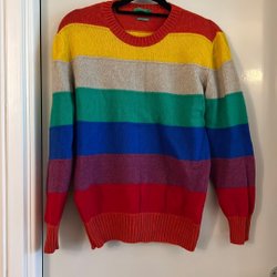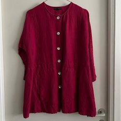 Blå och vit randig tunika med trekvartsärmar och en bröstficka. Tunikan har en liten v-ringning med knappar.