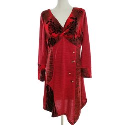 VINTAGE Stickad tunika för Dam Burgunder 36 Lång ärm Akryl 100% V-ringning