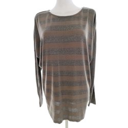 Tunikablus Ränder Brun XL Lång ärm Rund urringning