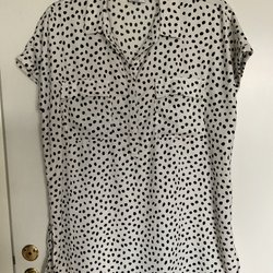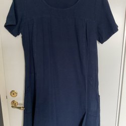 Tunika med kort ärm och två bröstfickor och slitsar i sidorna. Mönstret är i olika nyanser av grönt.