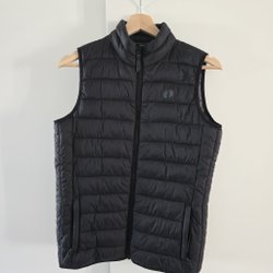 Svart vadderad väst med dragkedja fram och två fickor med dragkedja.