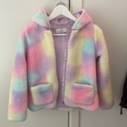 Söt rosa väst med mjukt yttre och ett lekfullt mönster på insidan med djur och växter. Perfekt för att lägga till ett extra lager av värme och stil till ditt barns outfit.