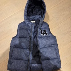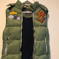 Namnmärkt men strl mest troligt 122/128. Från HM. Fint använt skick. Mjuk och skön. Perfekt till hösten. Avtagbar luva.
