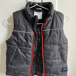Svart vadderad väst med hög krage. Den har en dragkedja framtill och två fickor med dragkedja på sidorna. En praktisk och stilren väst som passar för olika tillfällen. Modellen på västen är lite kortare i livet. Som ger en sportig look.