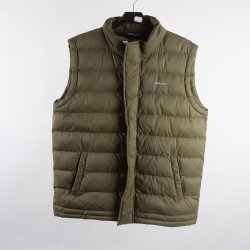 En vadderad väst i en ljusgrön nyans med en hel dragkedja framtill.