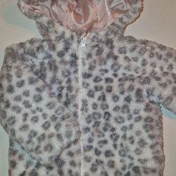 Vinterjacka med avtagbar huva med fuskpäls. Jackan har dragkedja fram och fickor.