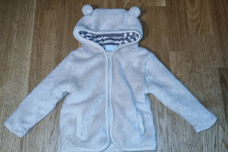Söt och mysig fleecejacka med huva och björnöron. Jackan har en dragkedja framtill och fickor i sidorna. Perfekt för kallare dagar, str 68