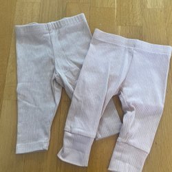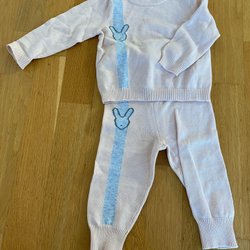 Ett set från Lindex med en body och ett par leggings. Bodyn har ett fint mönster med blommor och grönsaker. Leggingsen är enfärgade med en liten regnbåge på sidan.