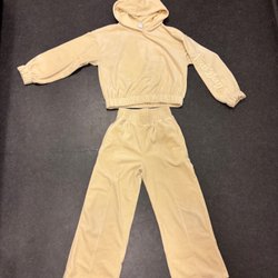 Ett sött set från Lindex Baby bestående av en ljusblå tröja med en mammutapplikation och ett par leggings med mammutmönster.