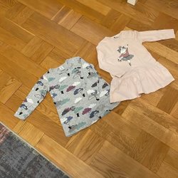 Fint set med en långärmad tröja från GAP med ett sött tryck av ballerinaskor och kronor, samt volangdetaljer vid axlarna. Matchande svarta leggings från Lindex med reglerbar resår i midjan