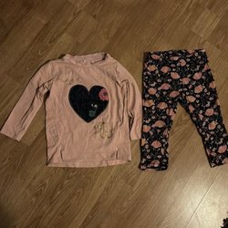 Ett litet sött set med en ljusgul, ribbad jumpsuit från Bebe (Lager 157) och en blommig pyjamas/jumpsuit med korta armar och ben från H&M.