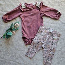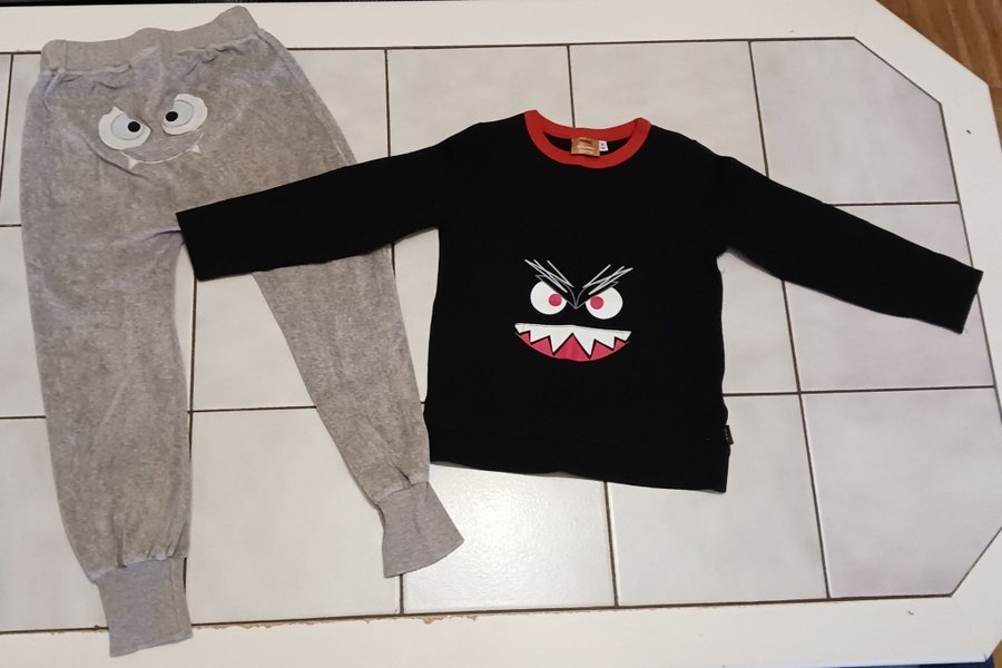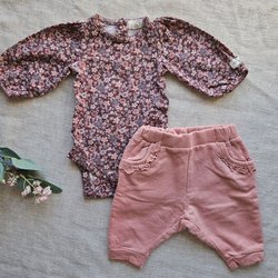 Fint set från me&i stl 98/104. Byxorna har ställbar midja med resår och knapp.