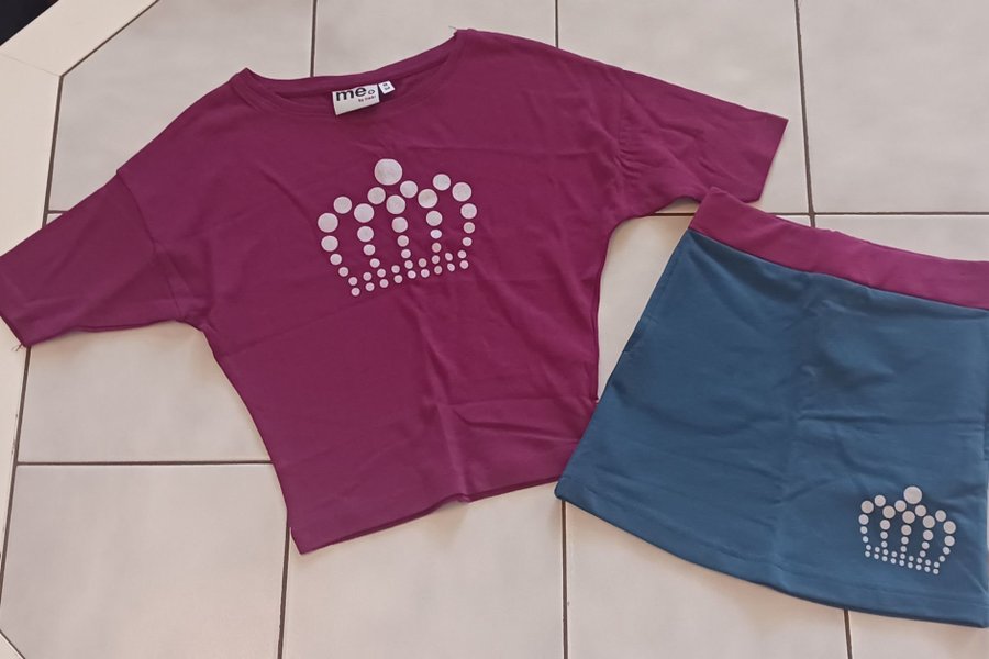 Nytt fint set från me&i stl 98/104. Kjolen har ställbar midja med resår och knapp.