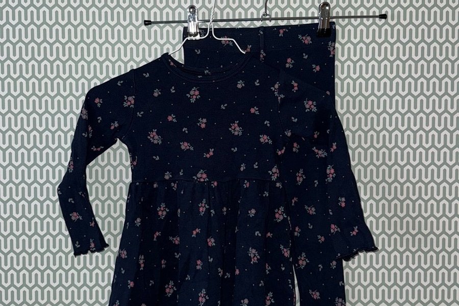 Ett fint set med en tunika och ett par leggings. Båda plaggen har ett blommigt mönster.