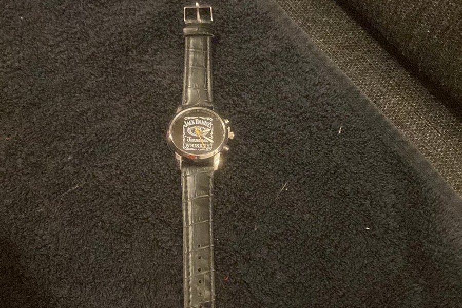 Jack Daniel's armbandsur Uret har en urskive med Jack Daniel's logo.