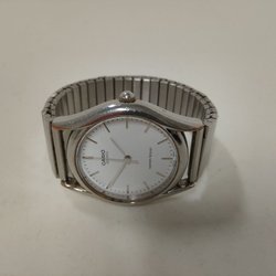 Detta armbandsur är ett tidlöst accessoar med ett klassiskt utseende. Armbandet är trasigt och kan behöva bytas ut eller repareras för att återfå sin fulla funktionalitet.