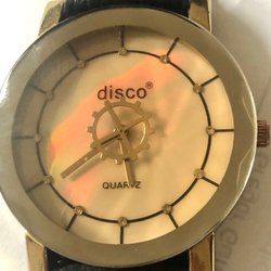 Svart XINEW armbandsur med vit urtavla. Klockan har ett svart armband.