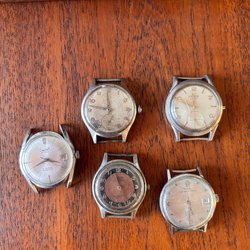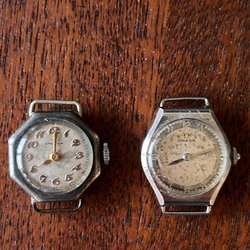Pilotklockor med manuella urverk. Tycks fungera vid fototillfället. Inga garantier lämnas. Armband i läder.
