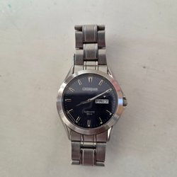Champion Splash herrklocka med ett silverfärgat armband i rostfritt stål och ett svart urtavla. Klockan har datumvisning och är vattentålig upp till 5 ATM.