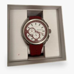 Gant herrklocka med ett brunt läderarmband och ett silverfärgat boett. Några mindre repor i glaset men inget som stör. Nytt armband. Batteriet fungerar.